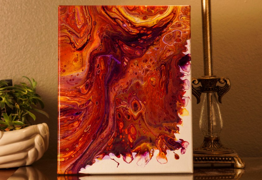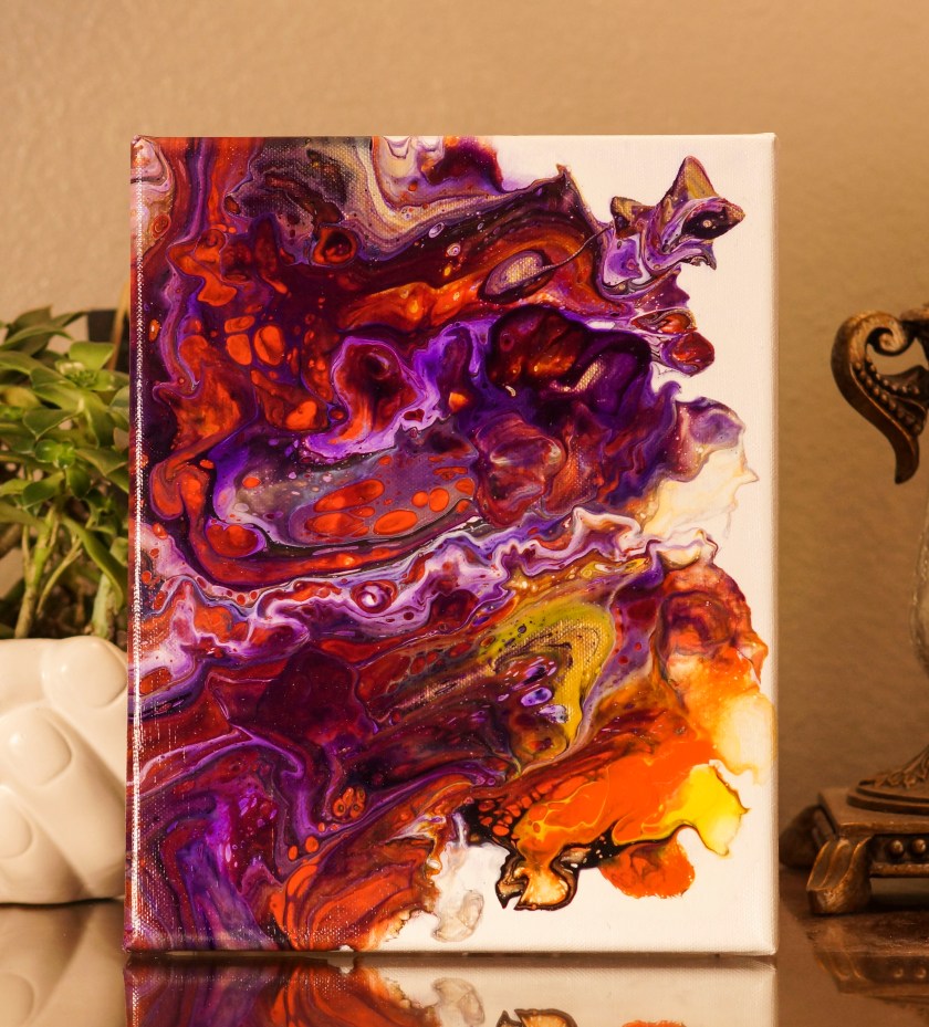 Acrylic fluid art on 8 x 8" canvas board. Clear coated with an archival, protective sealer. Ready for framing.